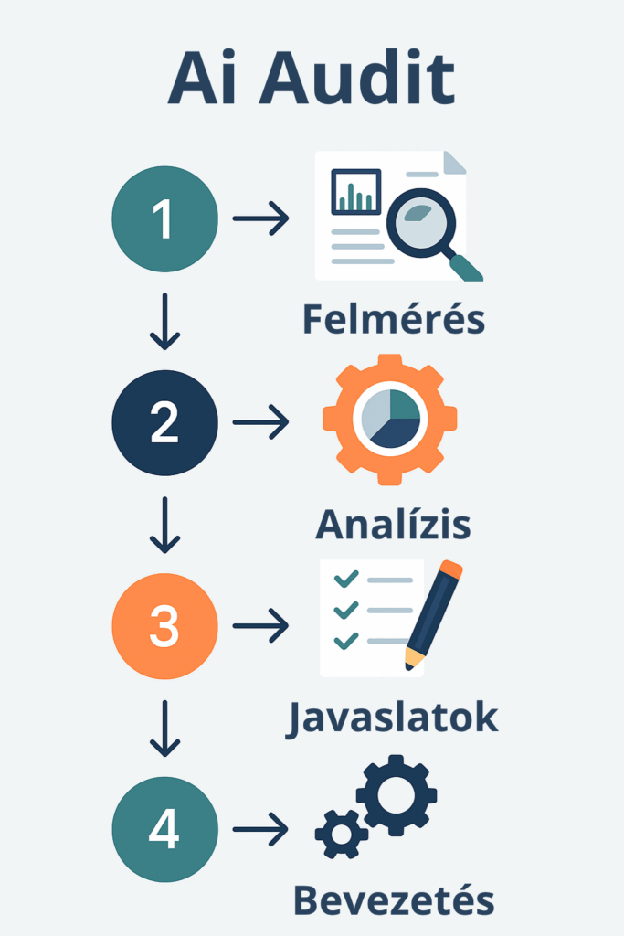 Ai audit tartalma: 3-5 folyamat, strukturált kérdőív + workshop + számítás